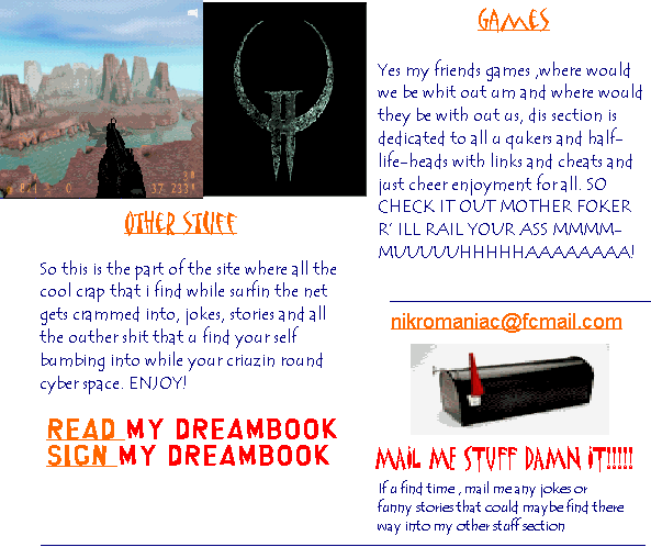 Yes people there is finaly a site on this god forsakin crock off bullshit that we call the world wide web that u can check out in peace no im not trying to sell u shit, so go on and indulge yourself thats right kick of your shoes put your feet up sit back and just enjoy the melodies for after all music soothes even the savage beast ! |